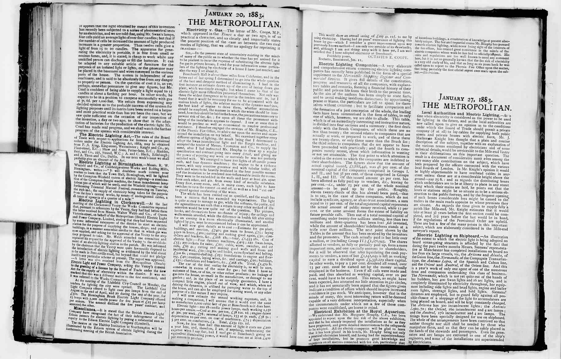 [SM016118c], Clipping, Metropolitan (London), January 27th, 1883 1883-01-27 -