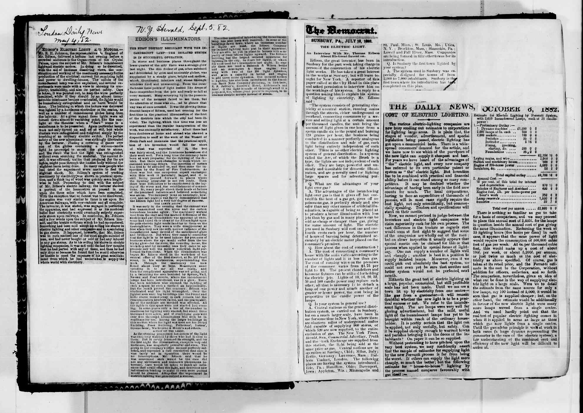 [SM016F], Interview, Thomas Alva Edison, September 2nd, 1882 1882-09-02 -