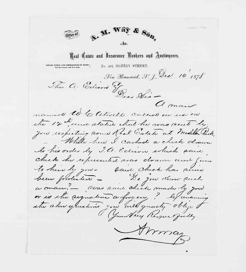 [D7802ZZNF], Letter from Way (A.M.) and Son to Thomas Alva Edison, December 16th, 1878 1878-12-16 -